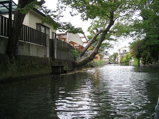 | 水門をくぐって掘割を下っていきます。 | ![]() |