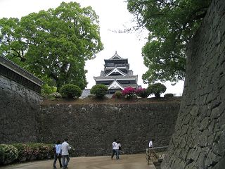 | 熊本城の石垣は「扇の勾配(おおぎのこうばい)」と呼ばれる美しいものです。 | ![]() |