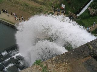 | 正午におじさんが栓を抜くと放水開始です。 | ![]() |