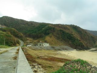 | サンニヌ台展望台から浜の方に下りてきました。あ、左手の方に風力発電施設が見えますね。 | ![]() |