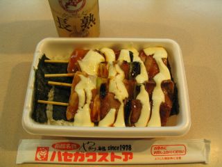 函館名物やきとり弁当の「大」(\609-)。チーズソース(\50-)はライムライトさんでもらったクーポンでサービス。 | ||||||||||||||||||||