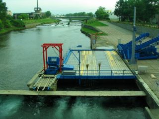 | また道の駅で休憩、「サーモンパーク千歳」です。ここにはサケ取りのインディアン水車があります。ただし、今の時期はシーズンオフで、動いていません。 | ![]() |