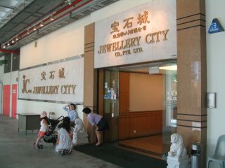 | 次に寄ったのは宝石城なるお店ですが、あんまり興味が無いので時間をもてあましてしまいます。2Fから上が工場になっていて「製造直売」、リーズナブルな価格だそうです、が。 | ![]() |
