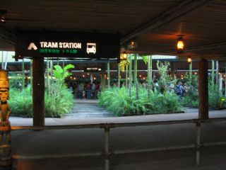 トラムの後ろの方に陣取って出発。このあと明かりが消えて真っ暗の中を探検です。 |