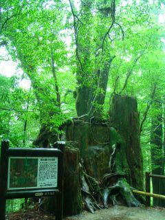 | 木道を歩いていくと二代杉があります。緑が美しく光っています。 | ![]() |