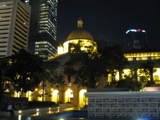 中環駅のそば、立法会大楼(Great Hong Kong Legislative Council Building)がライトアップされています。国会議事堂に相当する建物だそうです。 | ||||||