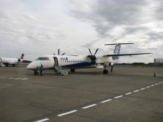 | バスで移動、エアステアで搭乗。 | ![]() |