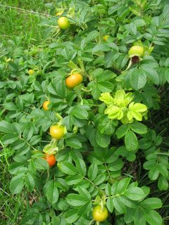 ピスカ21の植え込みにハマナスを発見。紅い実を付けています。ハマナスはバラ科バラ属、その実はローズヒップで、お茶やジャムにします。 | |||