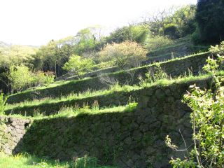 | ところどころに小規模な間歩(坑道)の跡があります。 | ![]() |