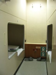 | 今回の居室は2等洋室(ツーリスト)です。パーソナルな感じに区切られています。 | ![]() |