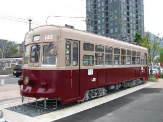 タワーの前には西鉄100形電車の148号が展示されています。(2010年3月末から展示) | ||||||||||||