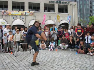 橋の前の広場では大道芸人のにいさんがパフォーマンス。 | ||||||||||||
