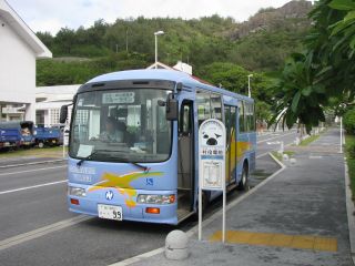 まず村営バスに乗ってジョンビーチを目指します。 村役場前08:15->小港海岸08:30