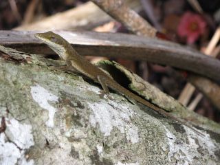 途中、トカゲを発見。グリーンアノール(外来種)かしら。 |