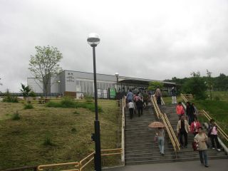 | 旭川に到着、シャトルバスに乗り換え。結構並んでいます。 |