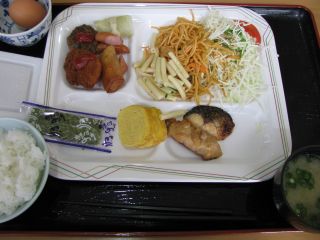 | 今日は関門海峡を越えて九州へ。朝食はビュッフェでがっつり。 |