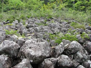 | 有名な駒止湖を見下ろすガレ場。 | ||||||