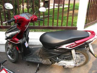 「チェンマイでは公共交通機関が少ないからバイクを借りると便利」という情報。国際免許も用意してきました。レンタル代は一日で170THB。 「デポジットにパスポートを預けろ」ってことだったのですが、ちょっと心配なので「コピーでok?」って聞いたら「ダメ」。日本円「壱萬円」をデポジットにすることに。 |