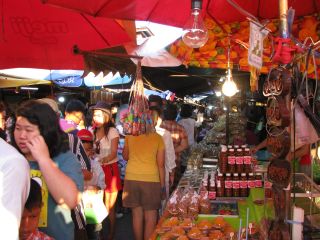 21時過ぎ、オンヌット駅からナイトマーケットを眺める。