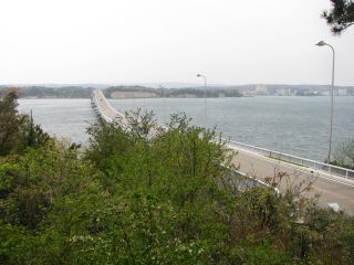 | ツインブリッジのとを西に、能登半島に戻ります。この橋、本名は「中能登農道橋」と言うらしい。 |