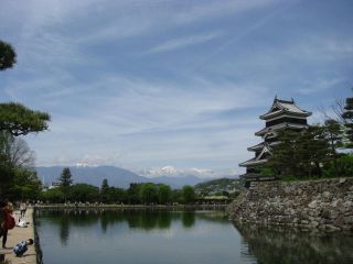 | お堀に沿って時計廻り、松本神社にお参り。 |