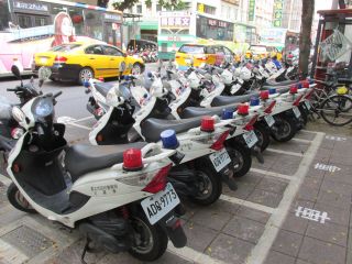 | では、台湾総統府を目指しましょう。途中、おそろいのスクータと思ったら警察車両のようです。 | ||||||||||